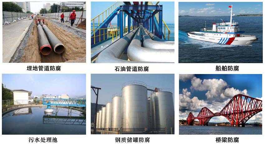 用于石油、化工、热电、冶金等行业工程制作装置中的钢结构、设备、煤气柜、管道、地面、防水层、污水池、造粒塔、烟筒仓等中等腐蚀及强腐蚀环境,也适用于船舶、桥梁防护。